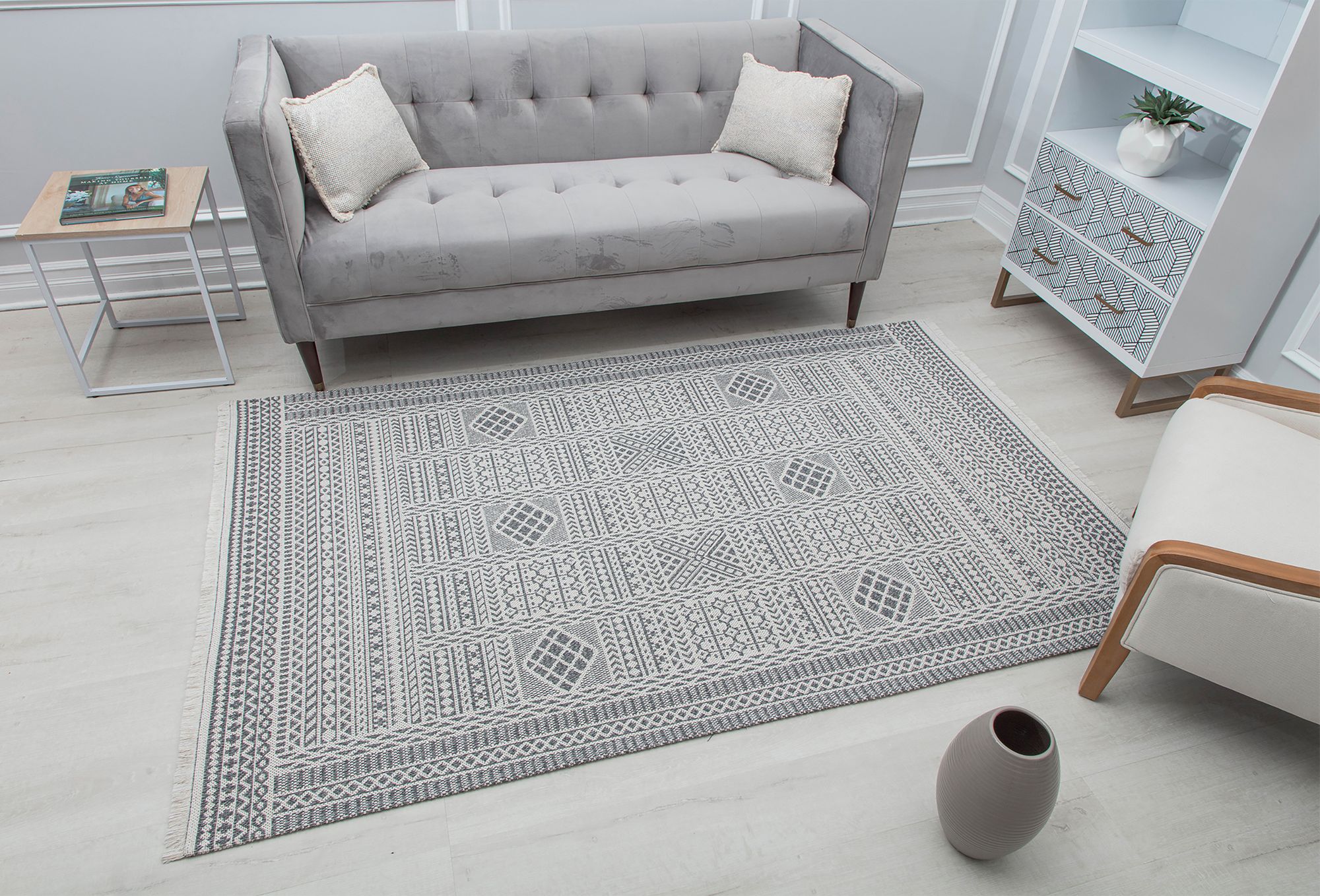 Like patterns drawn in the sand, this intricate design is a fashion statement made to be shown off. Featuring delicate patterns that weave and interlock, this area rug will add a sophisticated and intriguing element to your floors. Additionally, it is incredible versatile in style; this design works as a standalone piece that draws you into a space or as a beautiful backdrop that cohesively melds into your daily life. Choose how this area rug fits into your home.